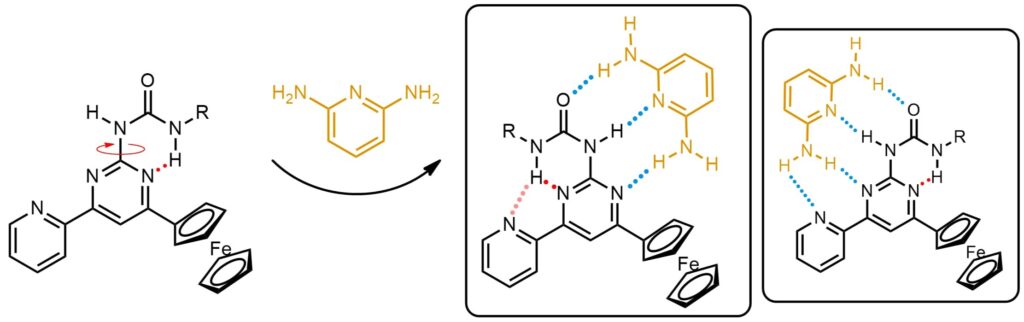 Investigation of Host–Guest Interactions in 2-Ureido-4-ferrocenylpyrimidine Derivatives