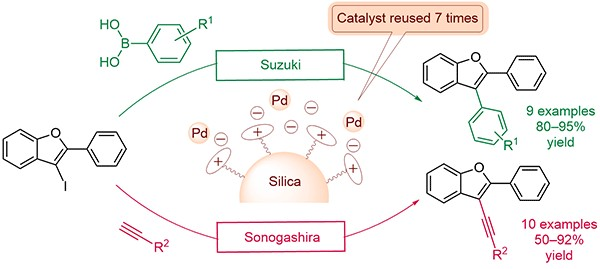 Synthesis of 3-Aryl-and 3-Alkynylbenzofurans in the Presence of a Supported Palladium Catalyst